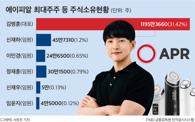 현재 에이피알의 주가는 상승세를 보이고 있으며, 이는 기업의 성장성과 함께 투자자들의 신뢰를 반영하고 있습니다. 김병훈 대표는 에이피알의 최대주주로서 31.42%의 지분을 보유하고 있으며, 이는 약 1,195,366주에 해당합니다. 이러한 지분 구조는 기업의 안정성과 지속 가능한 성장을 위한 기반이 되고 있습니다.