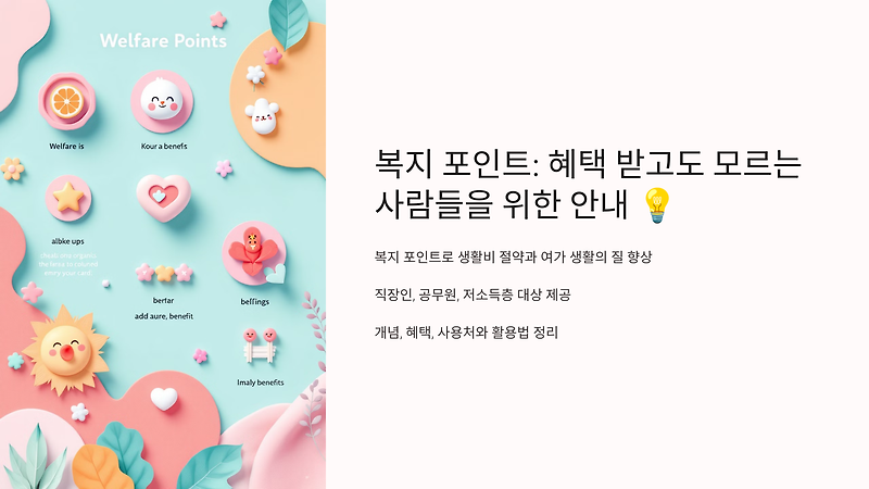 복지포인트는 65세 이상 어르신들이 받을 수 있는 다양한 혜택을 제공하는 제도입니다. 이 포스트에서는 복지포인트의 신청 방법과 혜택, 그리고 활용 방법에 대해 자세히 알아보겠습니다. 😊