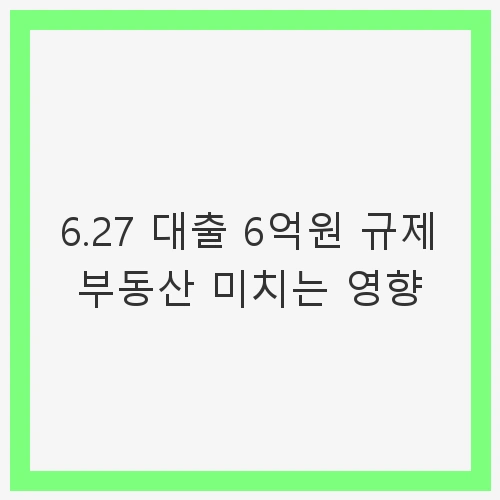 6.27 대출 6억원 규제 부동산 미치는 영향 및 향후 전망